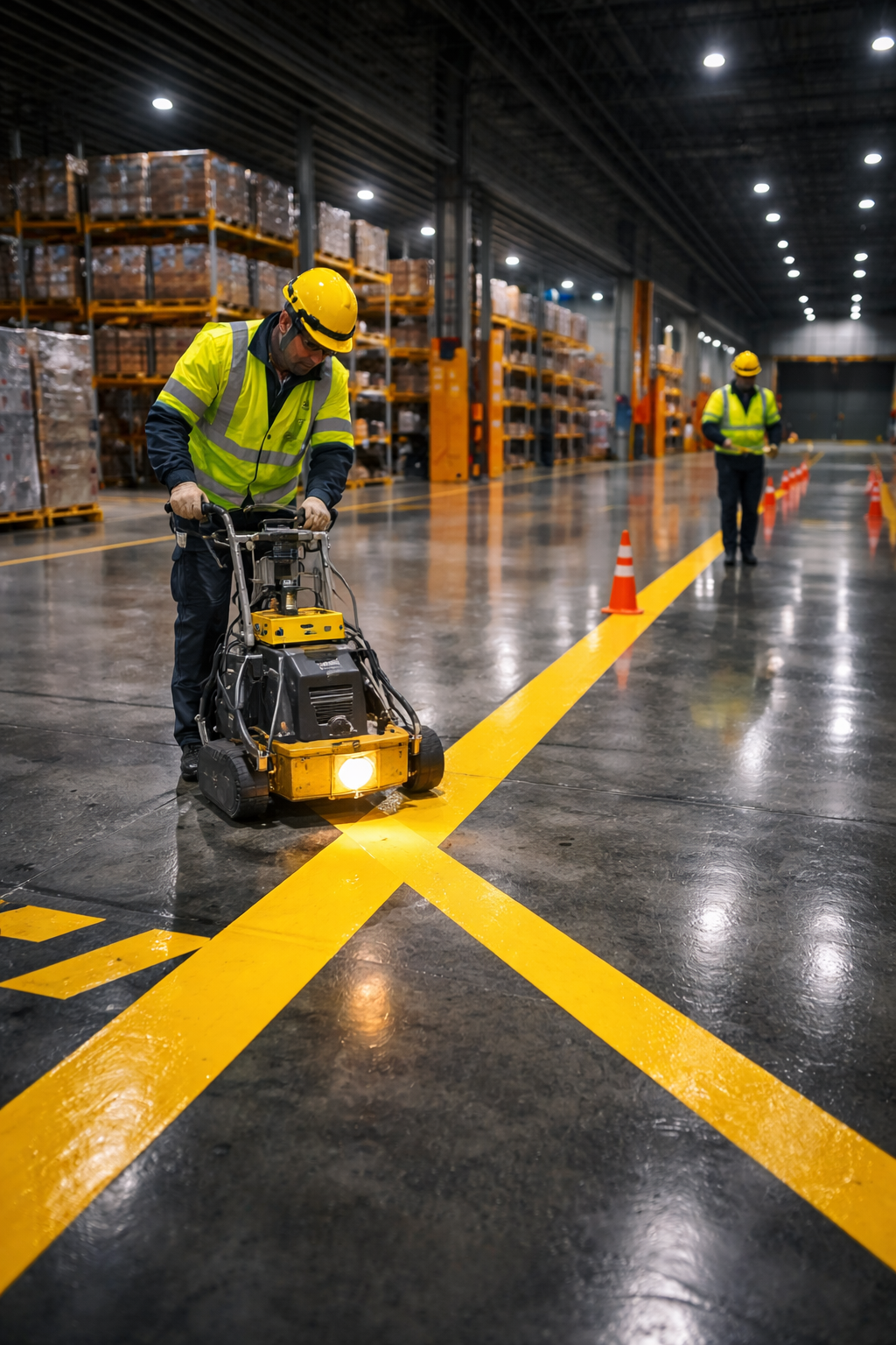 Clear demarcation for traffic, safety zones and operational workflow.